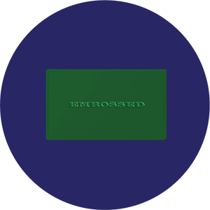 A printing that creates a raised design on a surface by pressing a die into the material from underneath, for instance, text and logo.